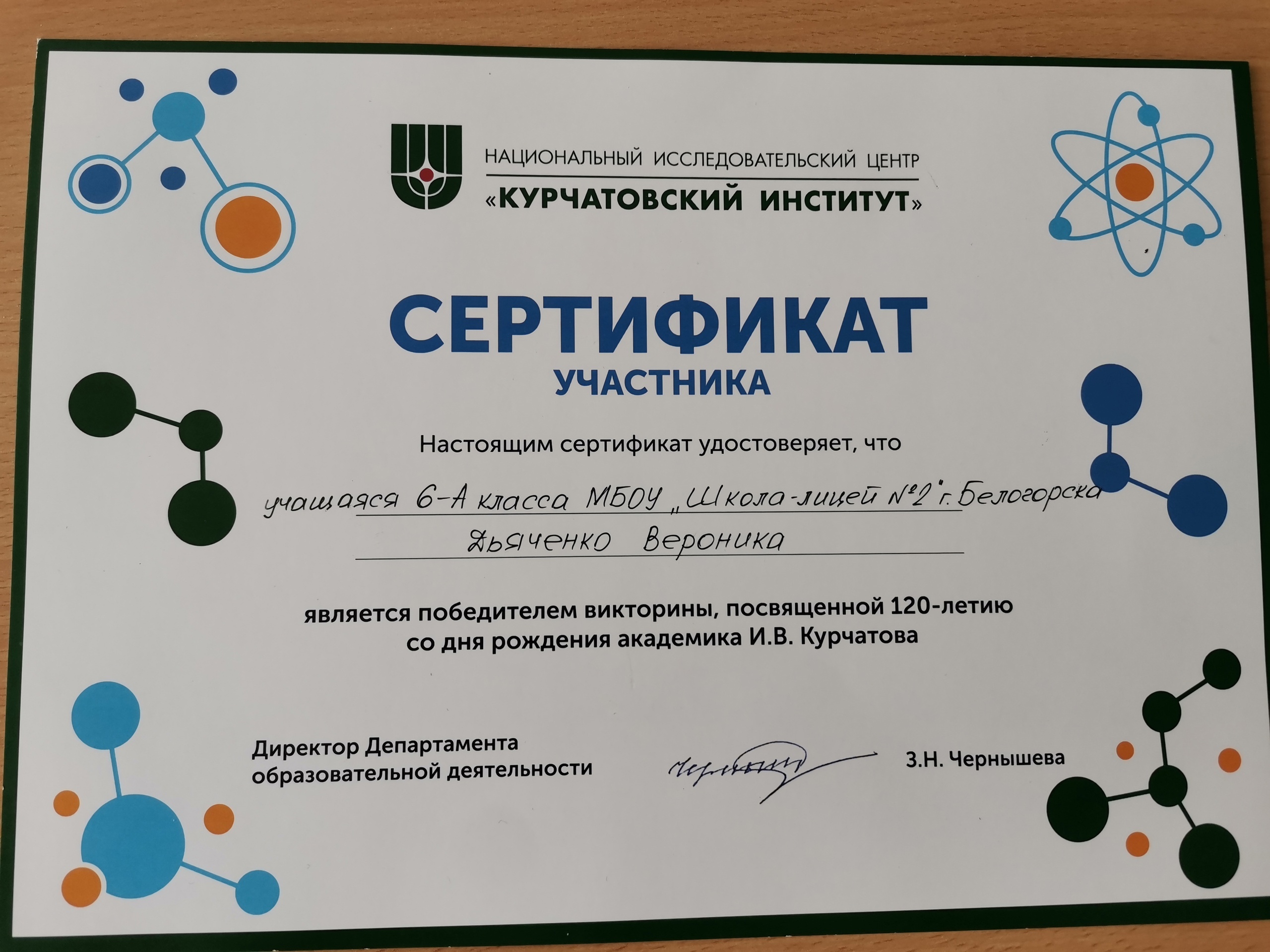 В МБОУ "Школа-лицей ^2" прошло мероприятие в курчатовских классах, посвящённое 115-летию со дня рождения И. К. Кикоина.