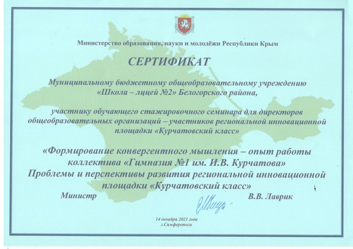 МБОУ "Школа-лицей №2 им. Героя Советского Союза Мирошниченко А.Д." г. Белогорска Республики Крым